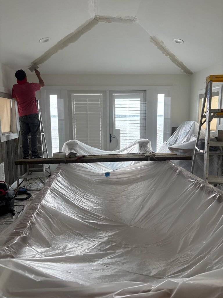 Our popcorn ceiling removal services modernize your interior spaces with a clean, smooth finish. We safely remove outdated textured ceilings and repair the surface underneath. Proper preparation and containment help reduce mess and disruption. After removal, we smooth, sand, and prepare the ceiling for painting. This process improves lighting, appearance, and home value. Our team works efficiently while maintaining attention to detail. We ensure ceilings are even and professional-looking. This service is ideal for homes undergoing updates or renovations. Popcorn removal creates a more modern, open feel. We handle each project with care and precision. Residential and commercial spaces benefit from this upgrade. The result is a clean, updated ceiling you’ll love.